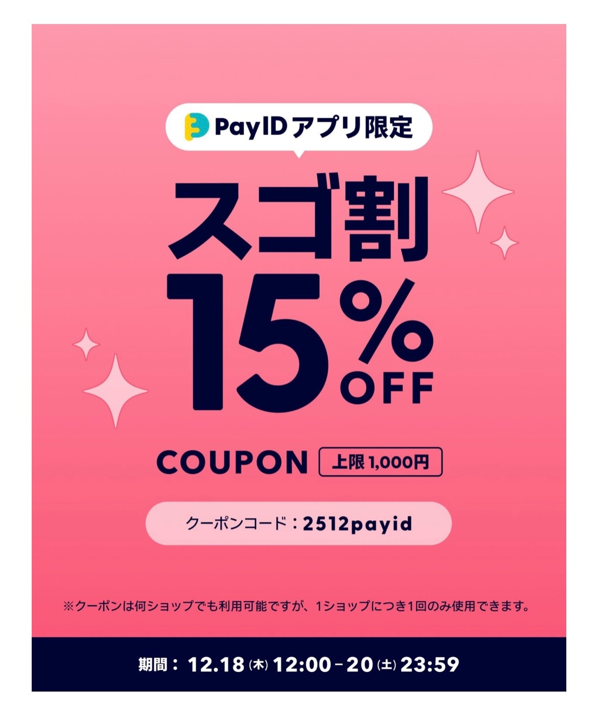 【12/18開始】15%OFF!「Pay IDアプリ限定 スゴ割」キャンペーン