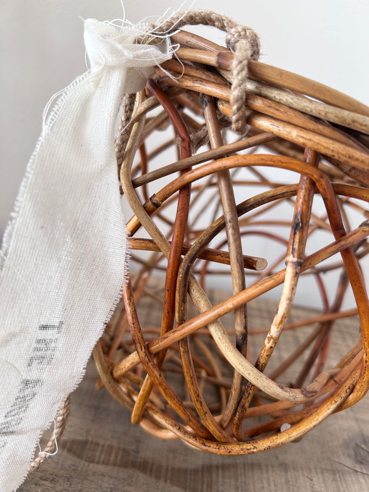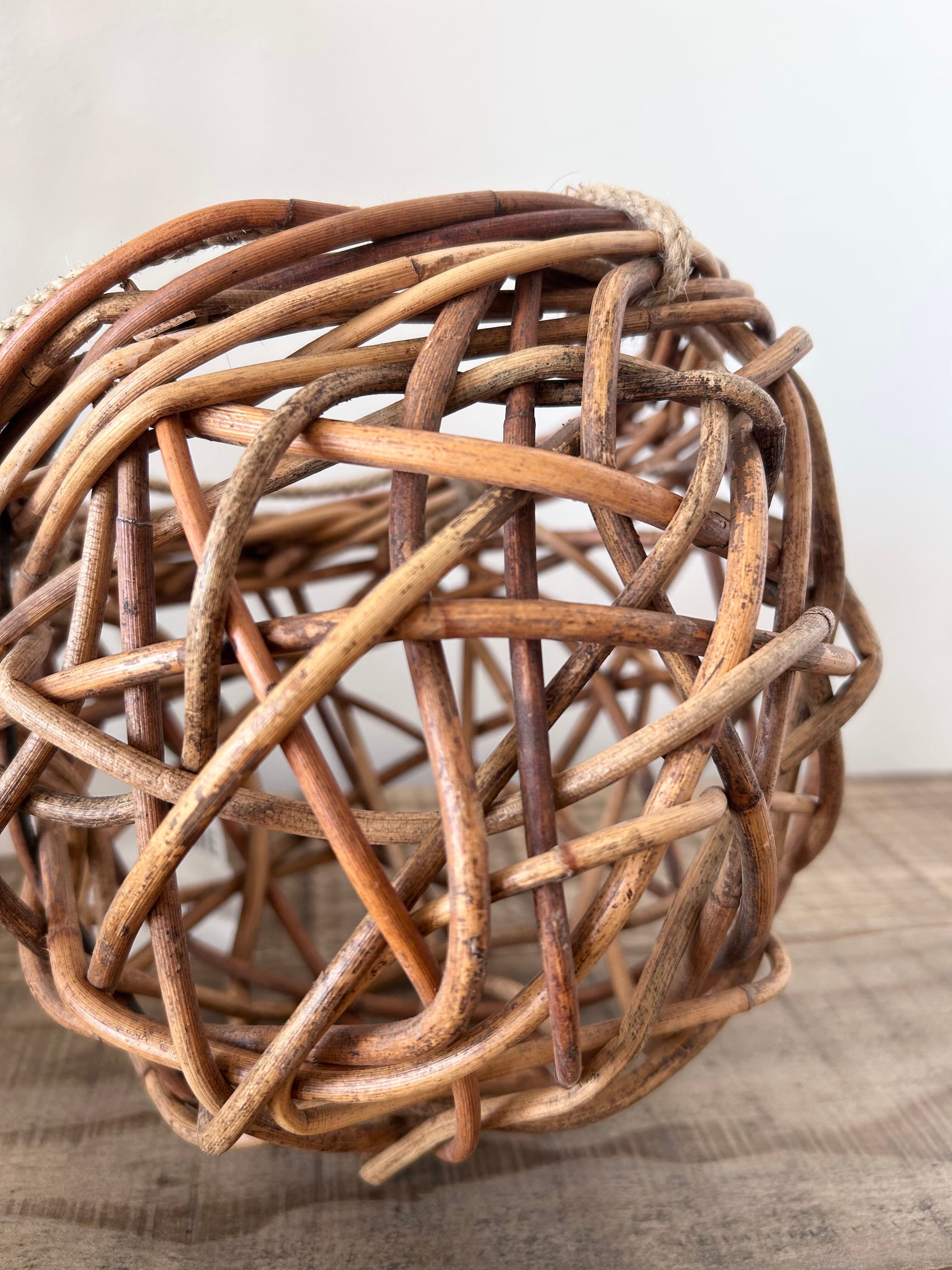 ランダムに編まれたラタン(籐)の編み目が特徴のハンギングバスケット