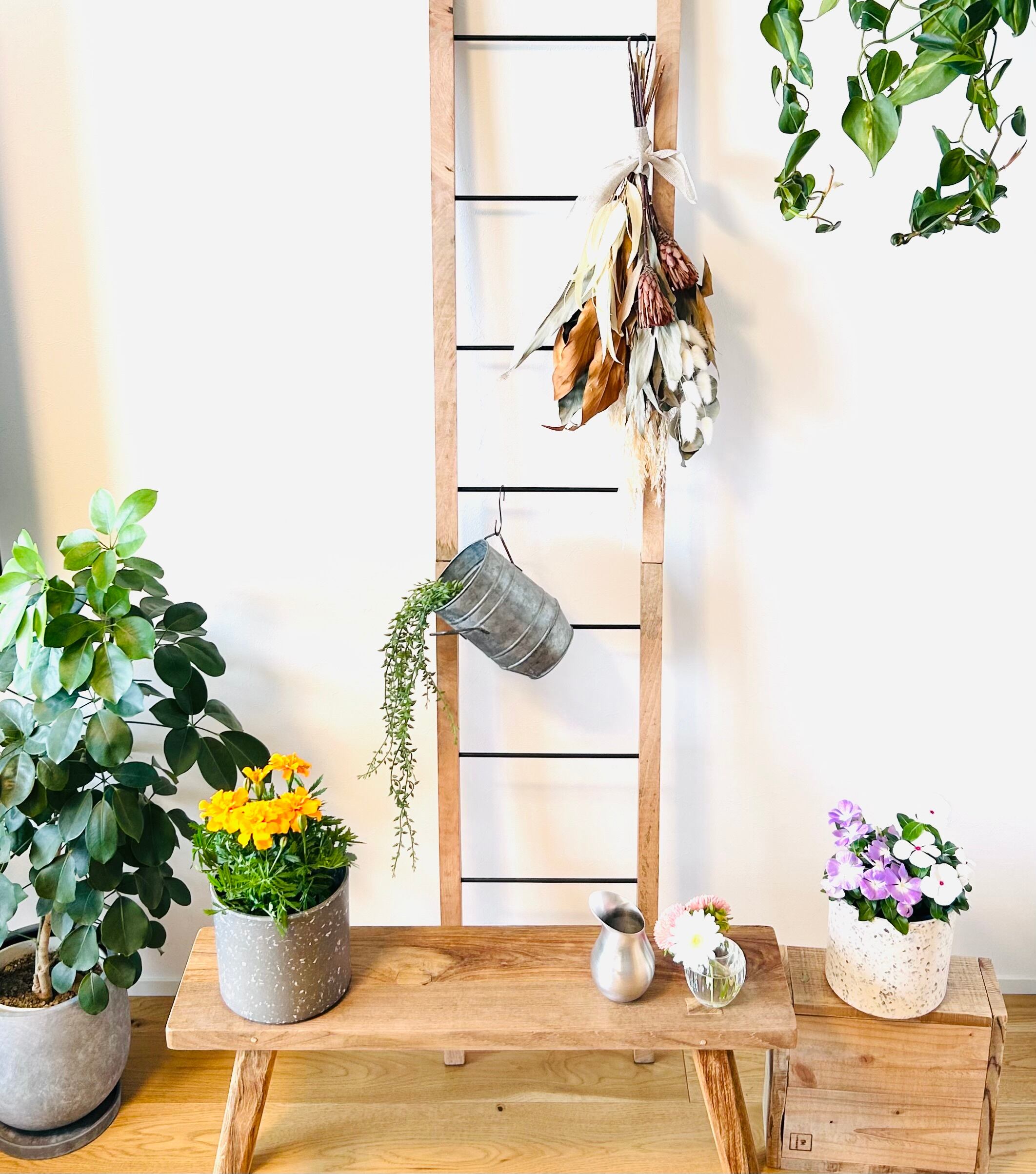 観葉植物や花の鉢カバーとしてはもちろん、シンプルなカラーリングなのでお水を入れてお花を彩るポットとしてもお楽しみいただけます。