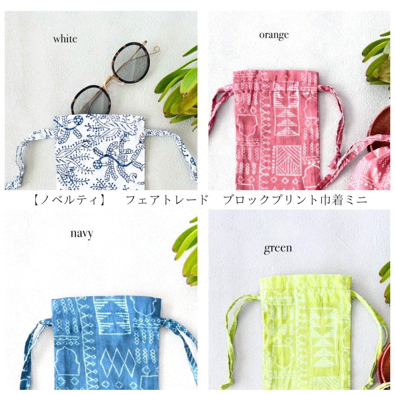 ・フェアトレード ブロックプリント巾着ミニ