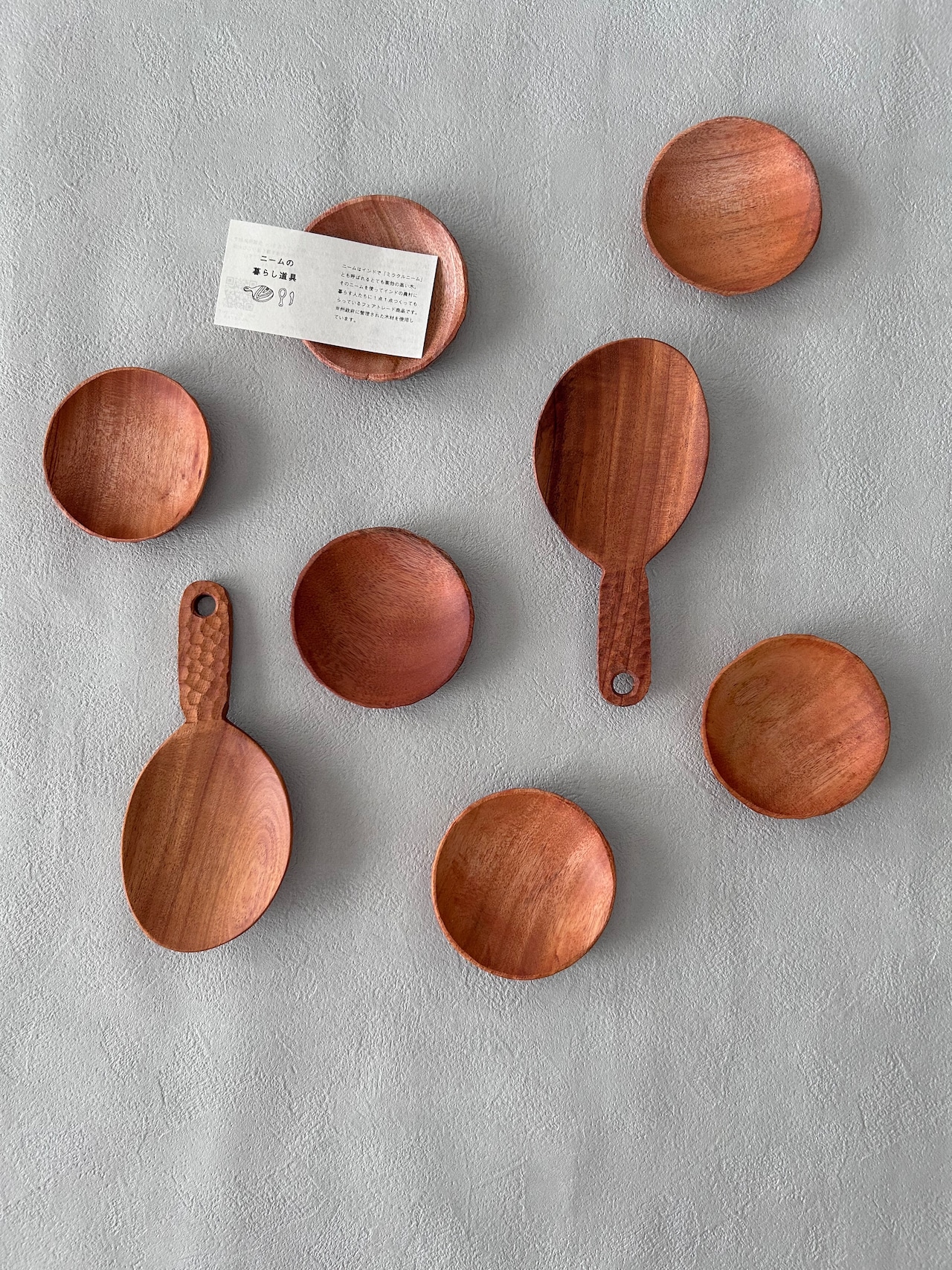 インドのコルカタから車で3時間の山奥にニームカトラリ—の生産者の村があります。「ミラクルニーム」とも呼ばれるとても薬効の高い木で作ってもらった食器は、ナチュラルな風合いで食卓に温かみをそえてくれます。