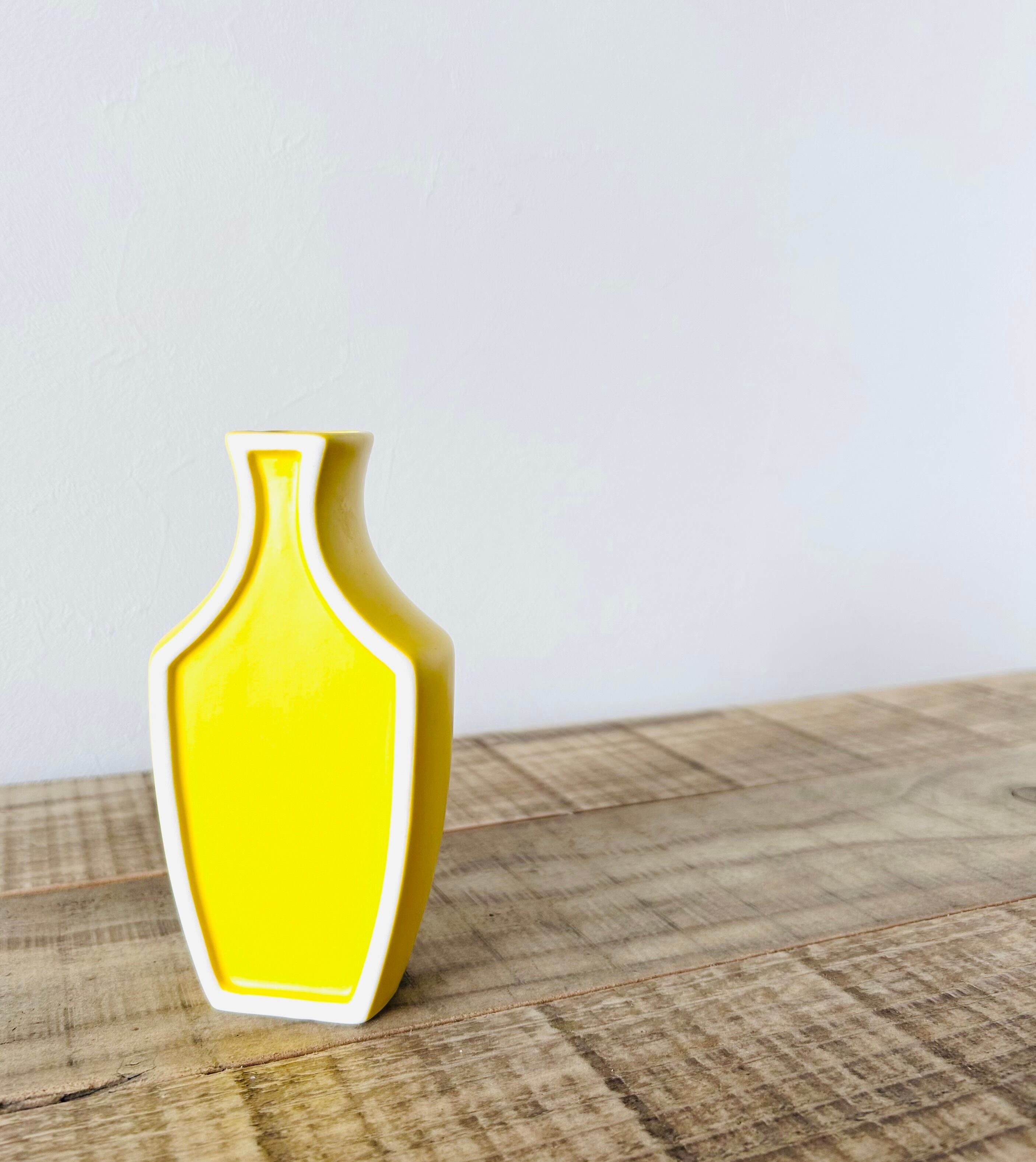 釉を剥がしたふちどりの輪郭で平面のように見える遊び心のある花器です。