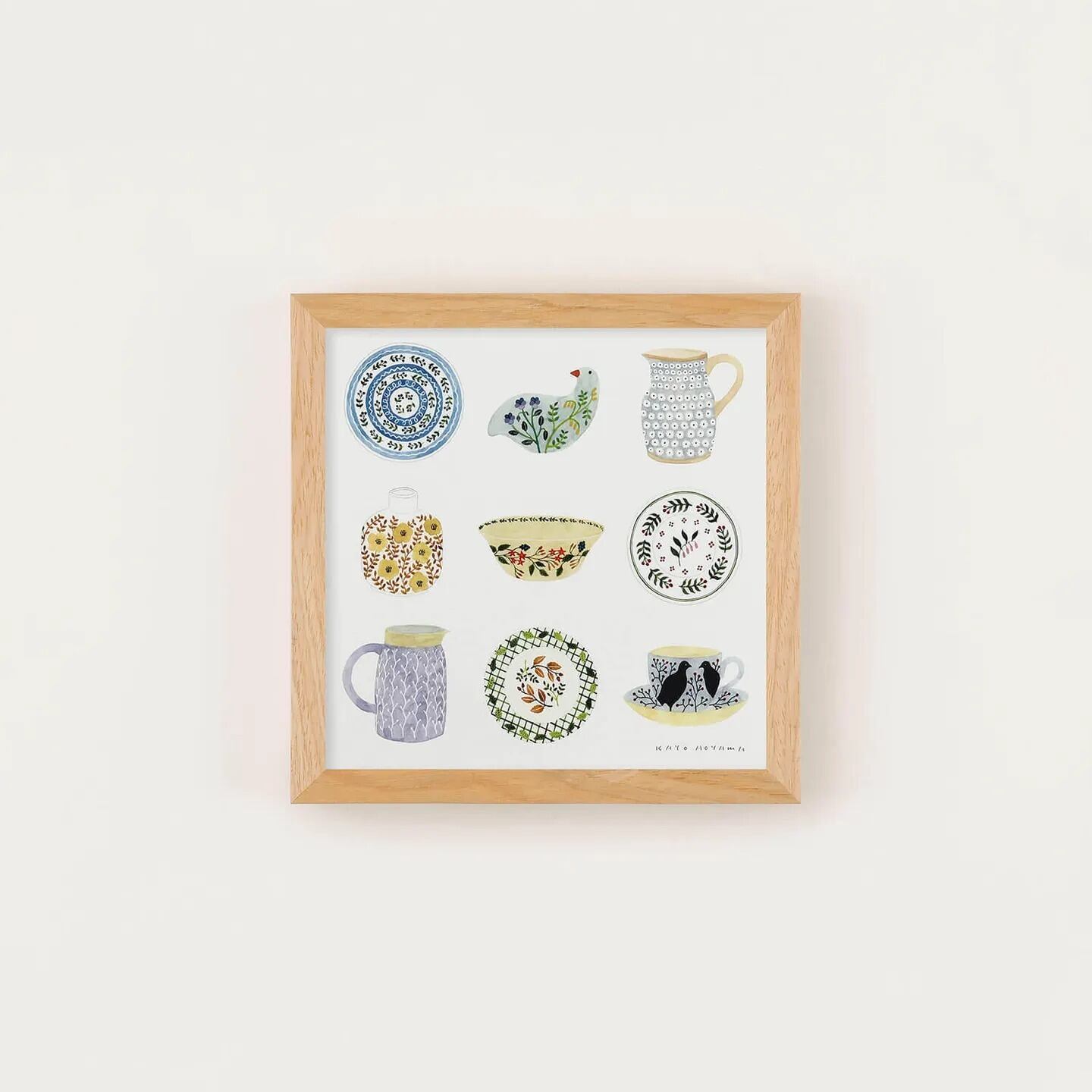 こんな陶器があったら!と心がワクワクする、青山佳世さんによって絵の具で描かれたアートポスターです。