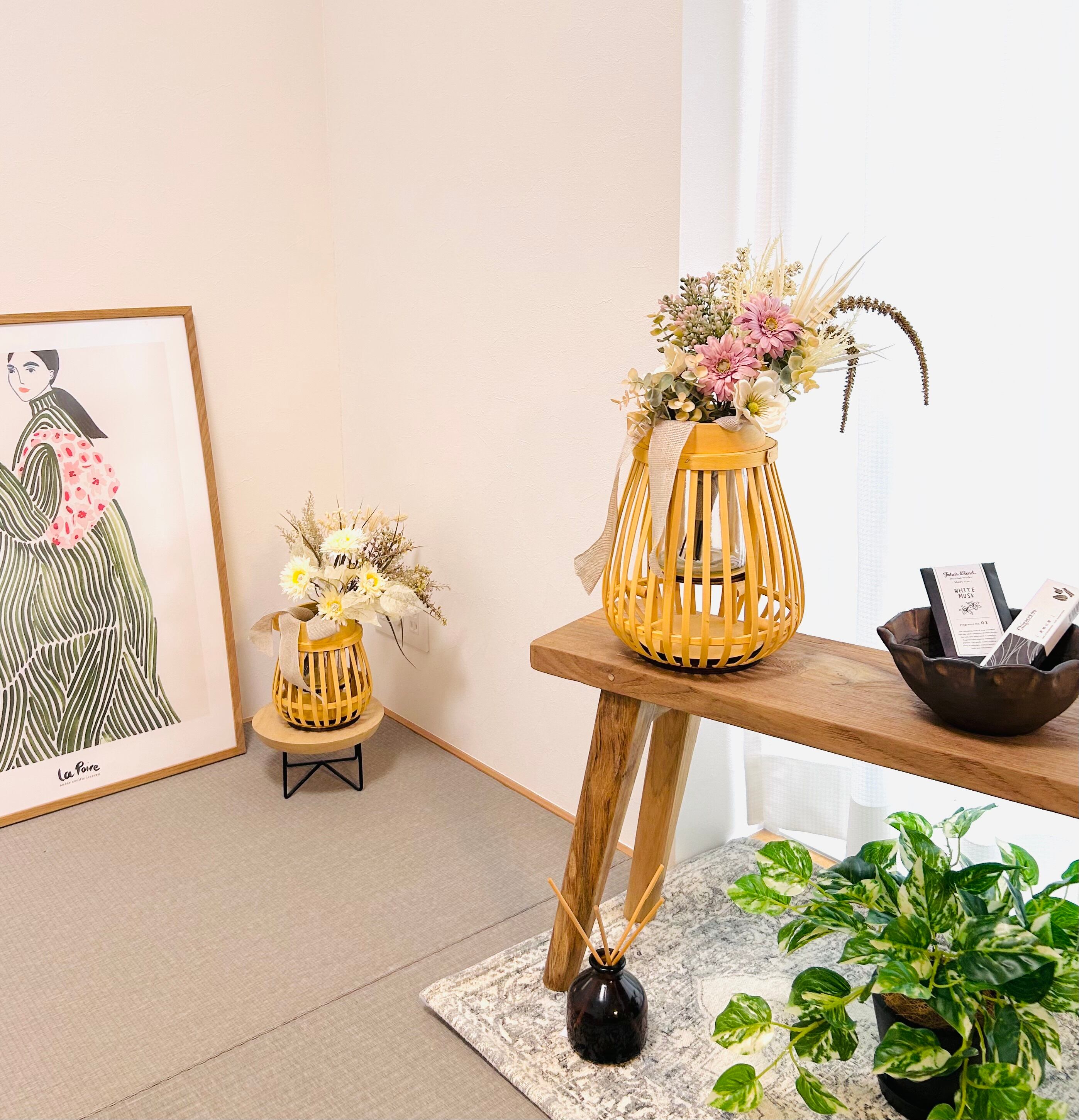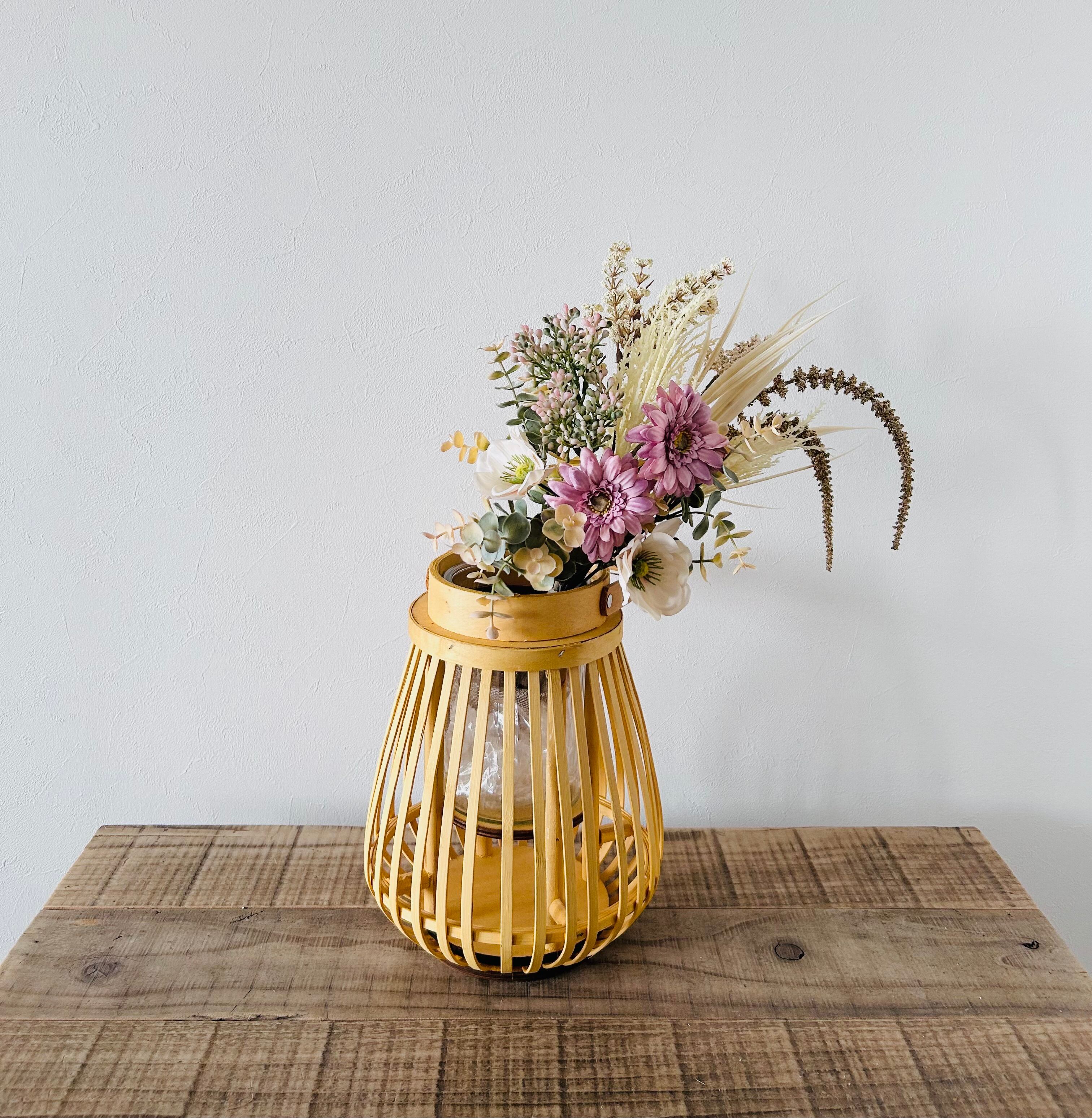 届いてすぐ飾れるアーティフィシャルフラワー(造花)×竹製ランタンアレンジ