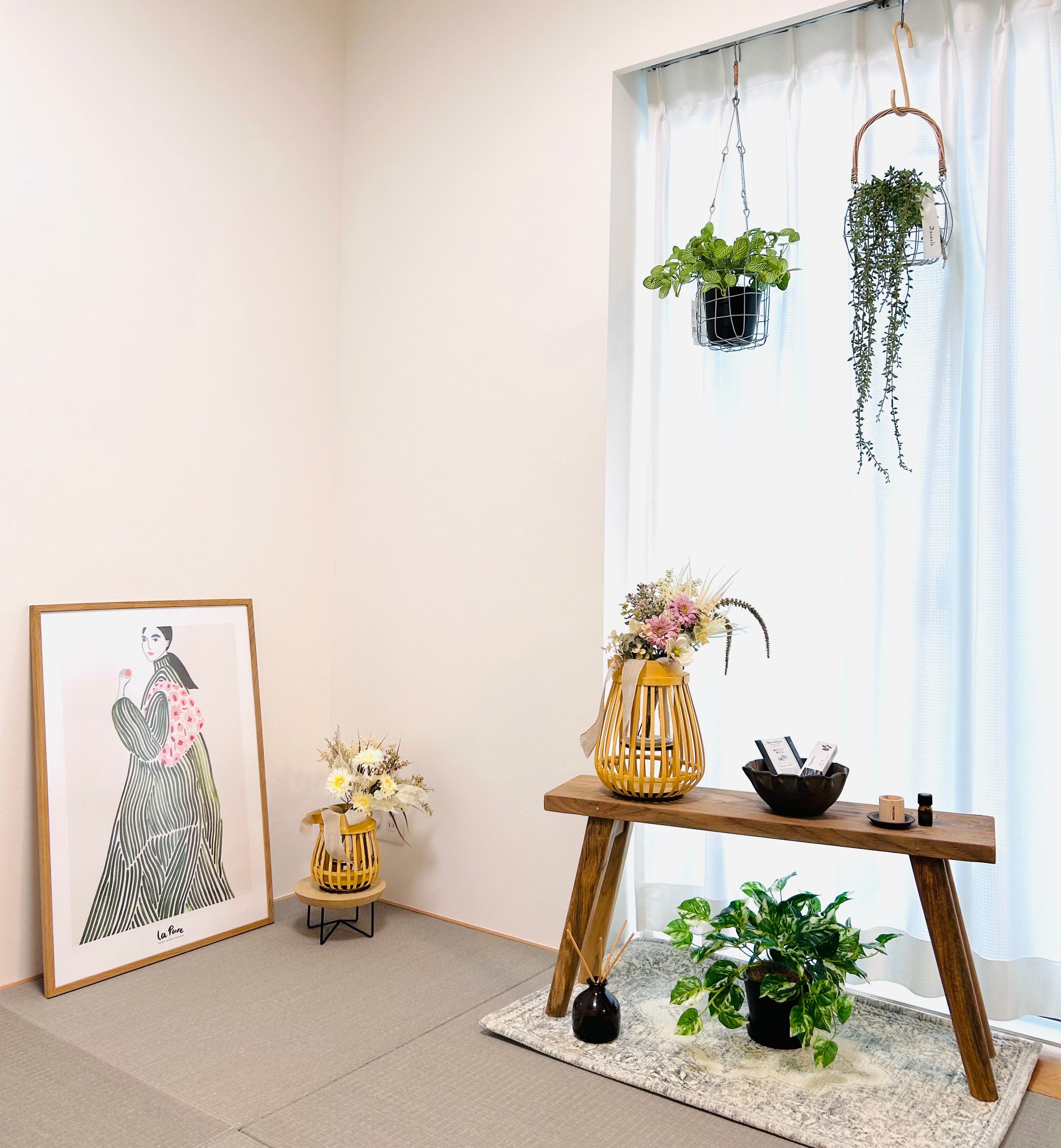 空間にパッと華やかさをプラスしてくれるフラワーインテリアです。
