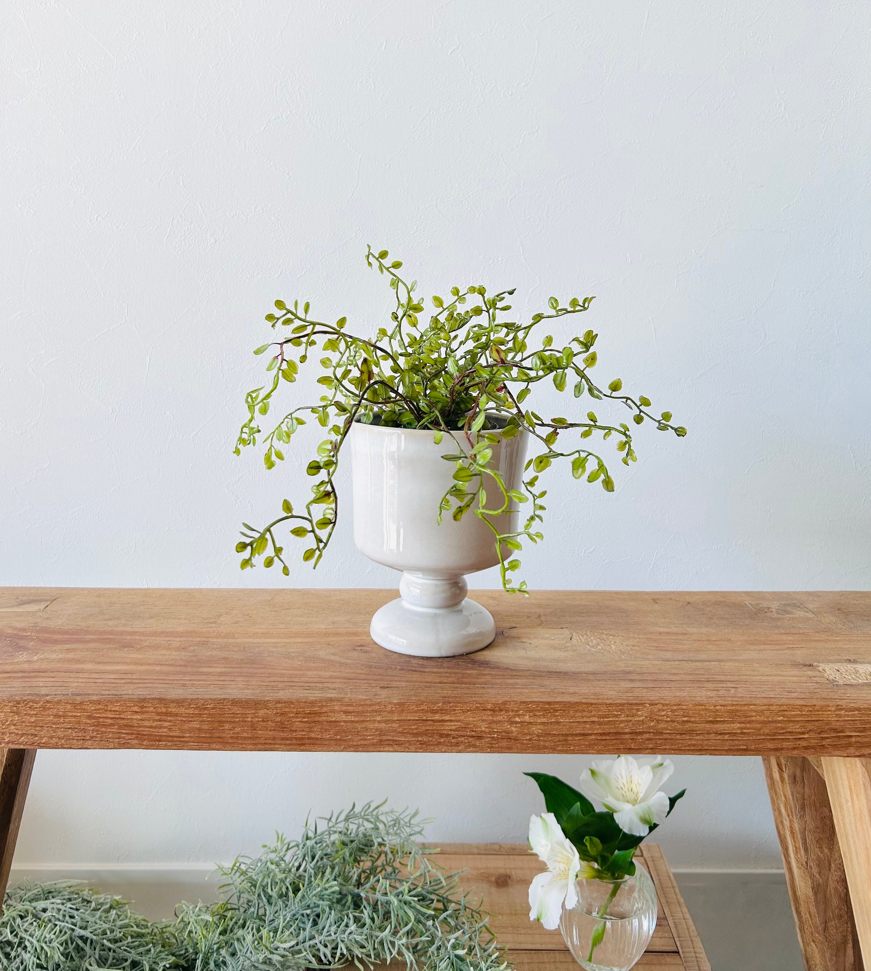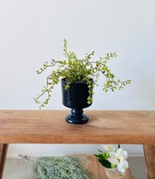 キャンドルスタンドをモチーフにした、クラシカルな磁器製鉢カバーと合わせたフェイクグリーンポットです。