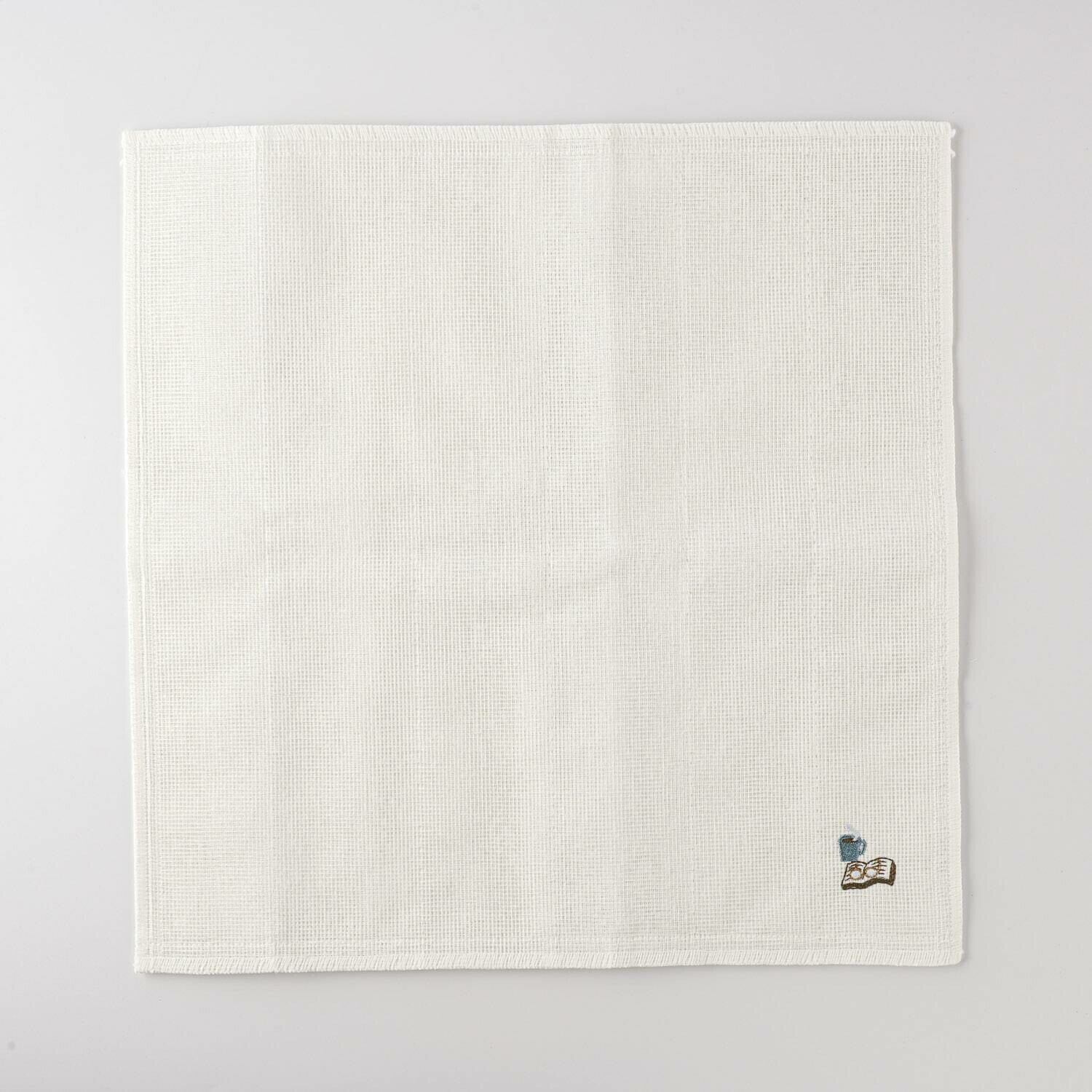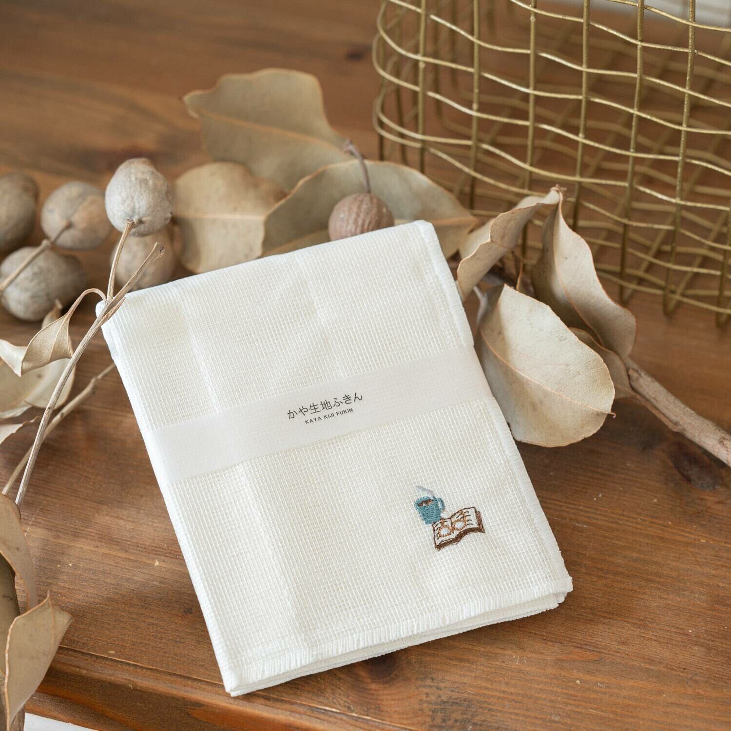 かや生地ふきん 刺繍 読書 【日本製/奈良県】