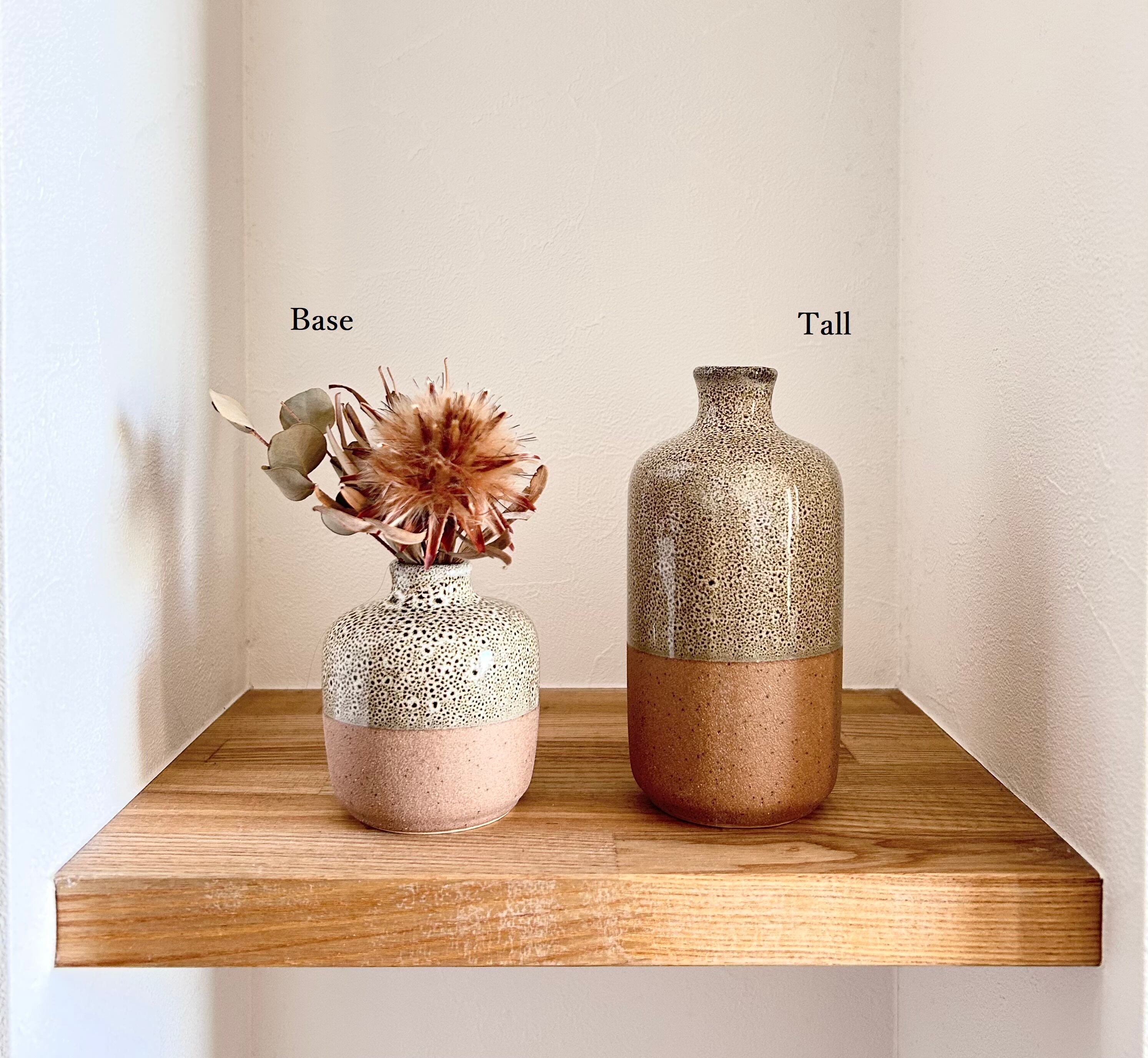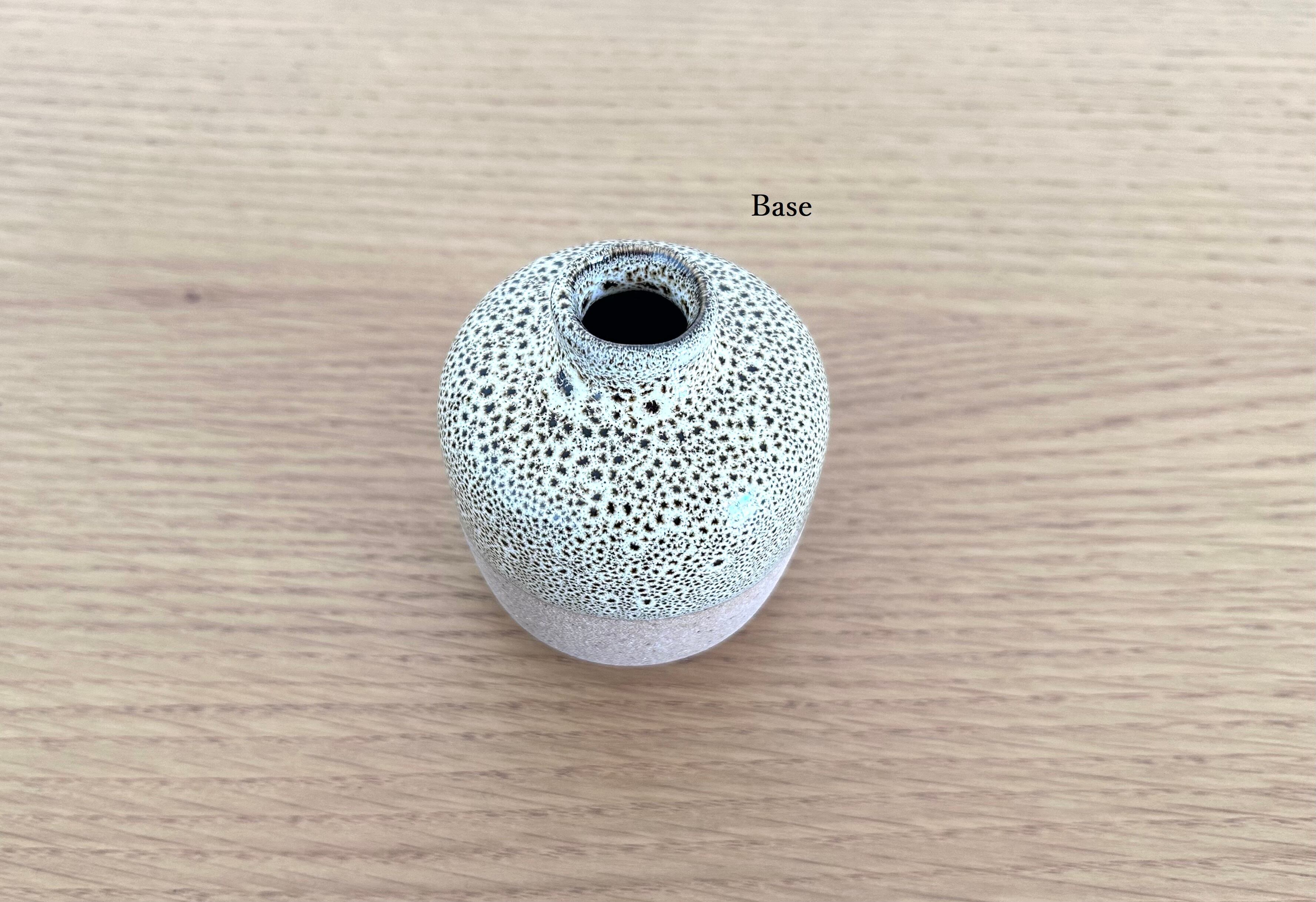 ころんとしたフォルムと、ザラザラした質感が魅力の一輪挿しです。